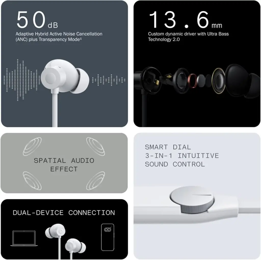 - کنترل لطیف و دقیق از طریق Smart Dial: تنظیم صدا، کنترل ANC و پخش/توقف با چرخش یا فشار دست